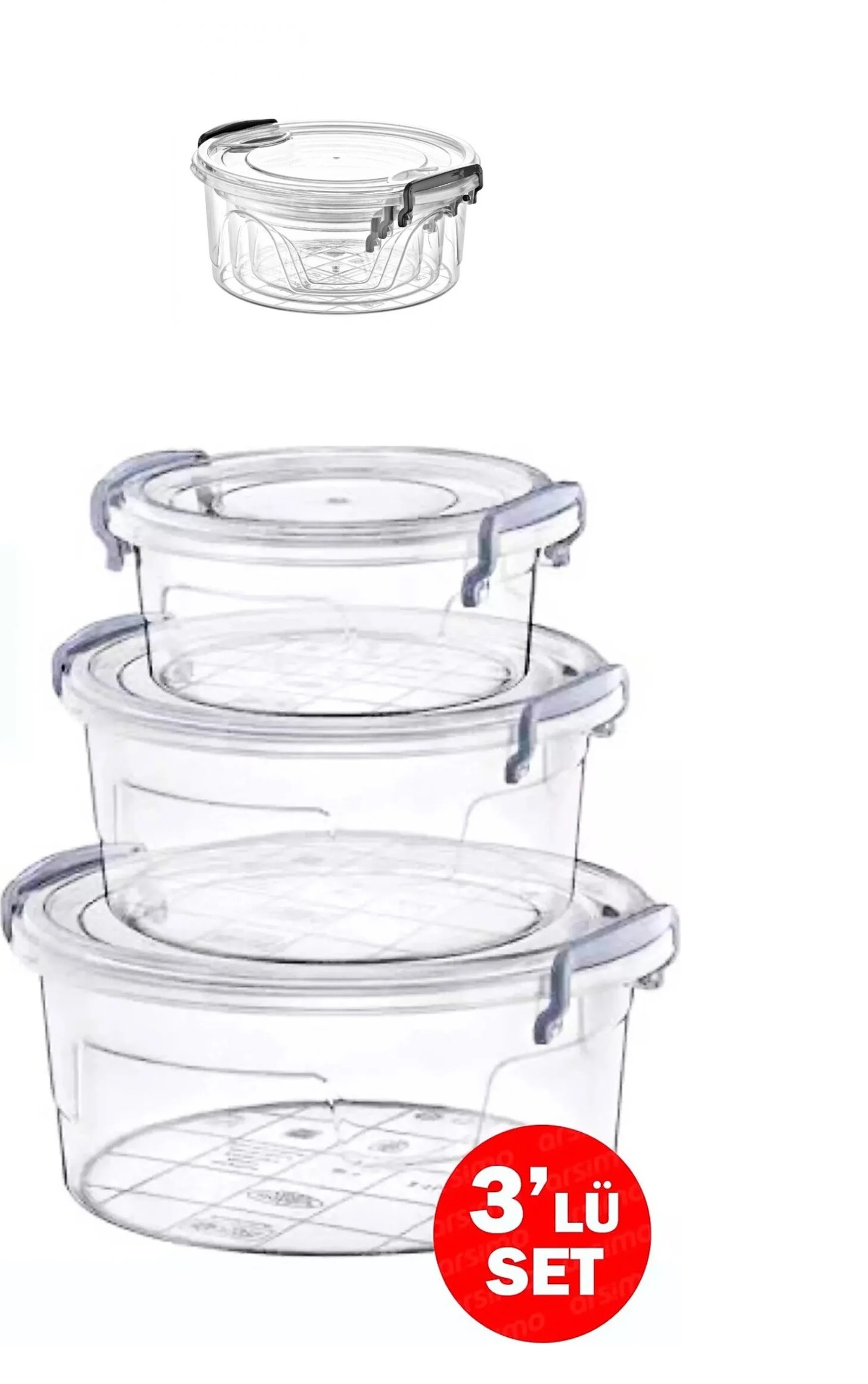 3lü Kilitli Saklama Kabı Seti İç İçe Geçmeli Şeffaf Plastik Sızdırmaz Gıda Saklama Kapları
