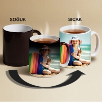 Renk değiştiren foto kupanızda çay veya kahvenizi yudumlarlen sevdiğiniz insanın resmini göreceksiniz. Resimli kupaya sıcak sıvı koyduğunuz zaman dış yüzeyindeki siyah renk gidecek ve onun yerine sizin seçtiğiniz fotoğraf belirecektir.