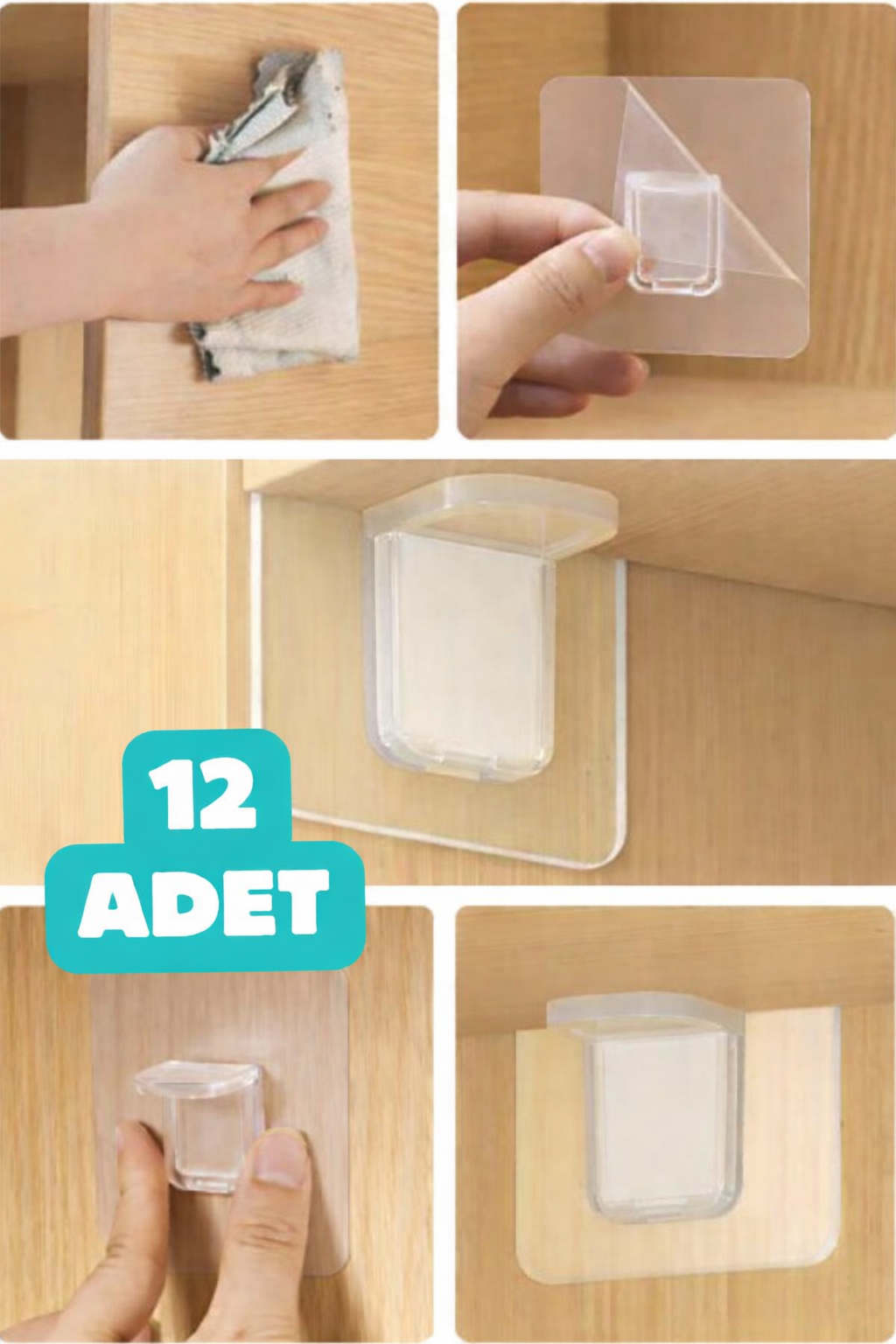 Raf Köşe Tutucu Yapışkanlı Dolap İçi Köşe Destek Aparatı 12 Adet Çok Amaçlı Klips